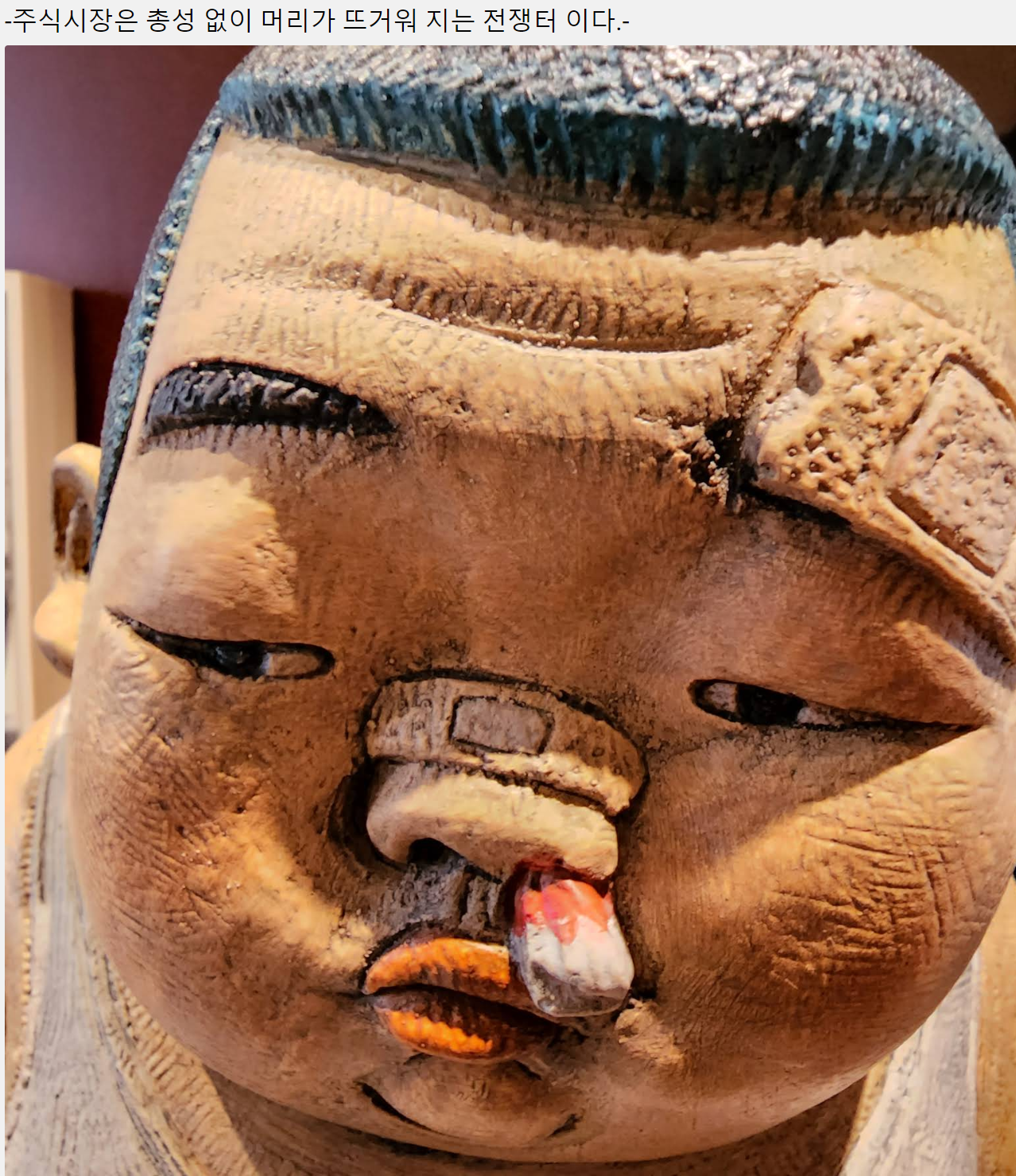 | 왜? 더 화가 나시는데요? 그분 때문에 계좌가 녹았나요? 제대로 공부 안하고 욕심을 내신 님의 손가락을 탓하셔야죠. 주식장에선 조급한 맘이 금물입니다. 차이나 수익내고 원유 플러스로 전환되어 수익실현 기다리고 있는데..이 어려운 장에 개별종목 비중도 작을 뿐더러 마이너스 2~3로 선방하고 있으면 대한민국 최고 아닌가요? |